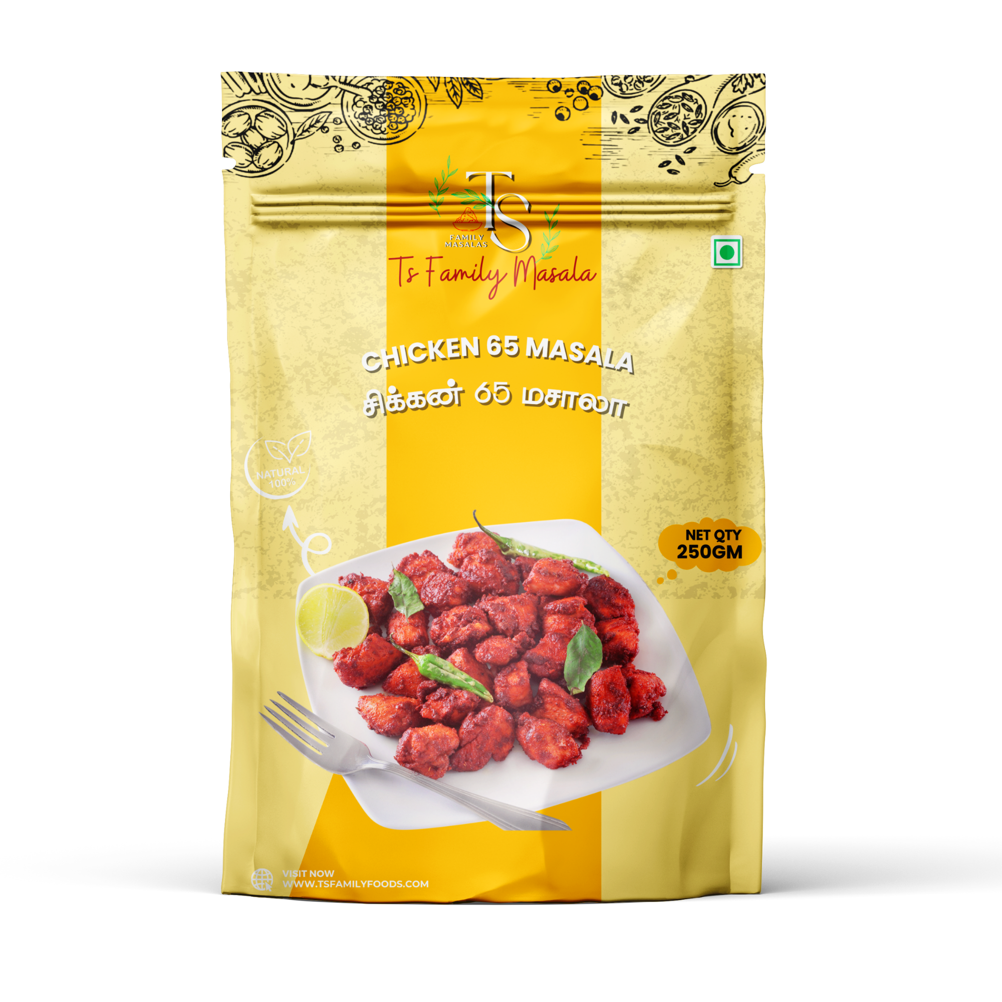 Chicken 65 is a popular and flavorful South Indian dish, known for its bold, spicy taste and crispy texture. The "masala" refers to the unique blend of spices used to marinate and coat the chicken pieces. Here’s a breakdown of what goes into it: