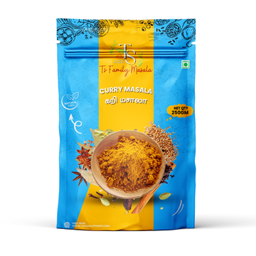 Delight in the rich flavors of South Indian curries with TS Family Masala’s Curry Masala. Handcrafted with care using a blend of aromatic spices and fresh ingredients, this homemade masala embodies the warmth and authenticity of homestyle cooking. TS Family Masala prides itself on creating products free from preservatives, artificial substances, and food coloring, ensuring each spoonful of masala brings pure, natural goodness to your dishes.