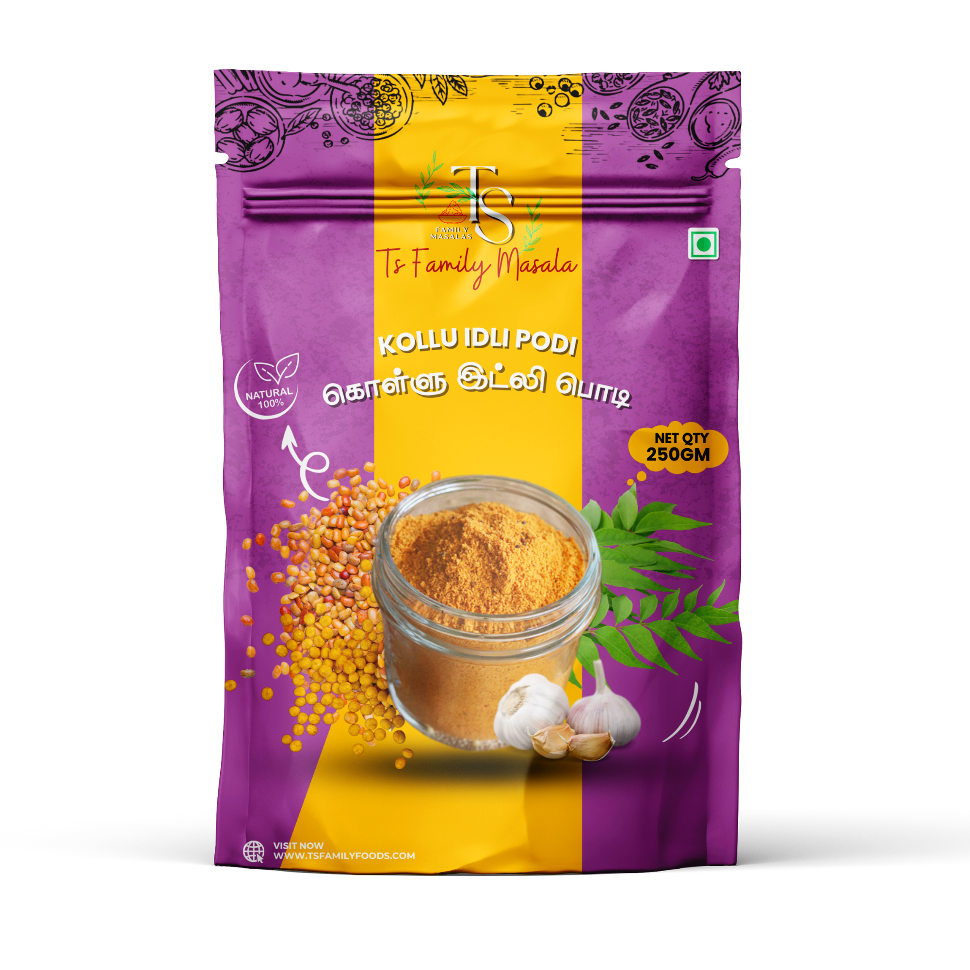 Enjoy the nutritious crunch and earthy flavor of TS Family Masala’s Kollu Idli Podi, loved by health-conscious individuals, South Indian cuisine aficionados, and anyone who appreciates the wholesome goodness of homemade delicacies. Elevate your meals with our traditional podi, crafted with passion and tradition to bring homemade goodness to your dining table.
