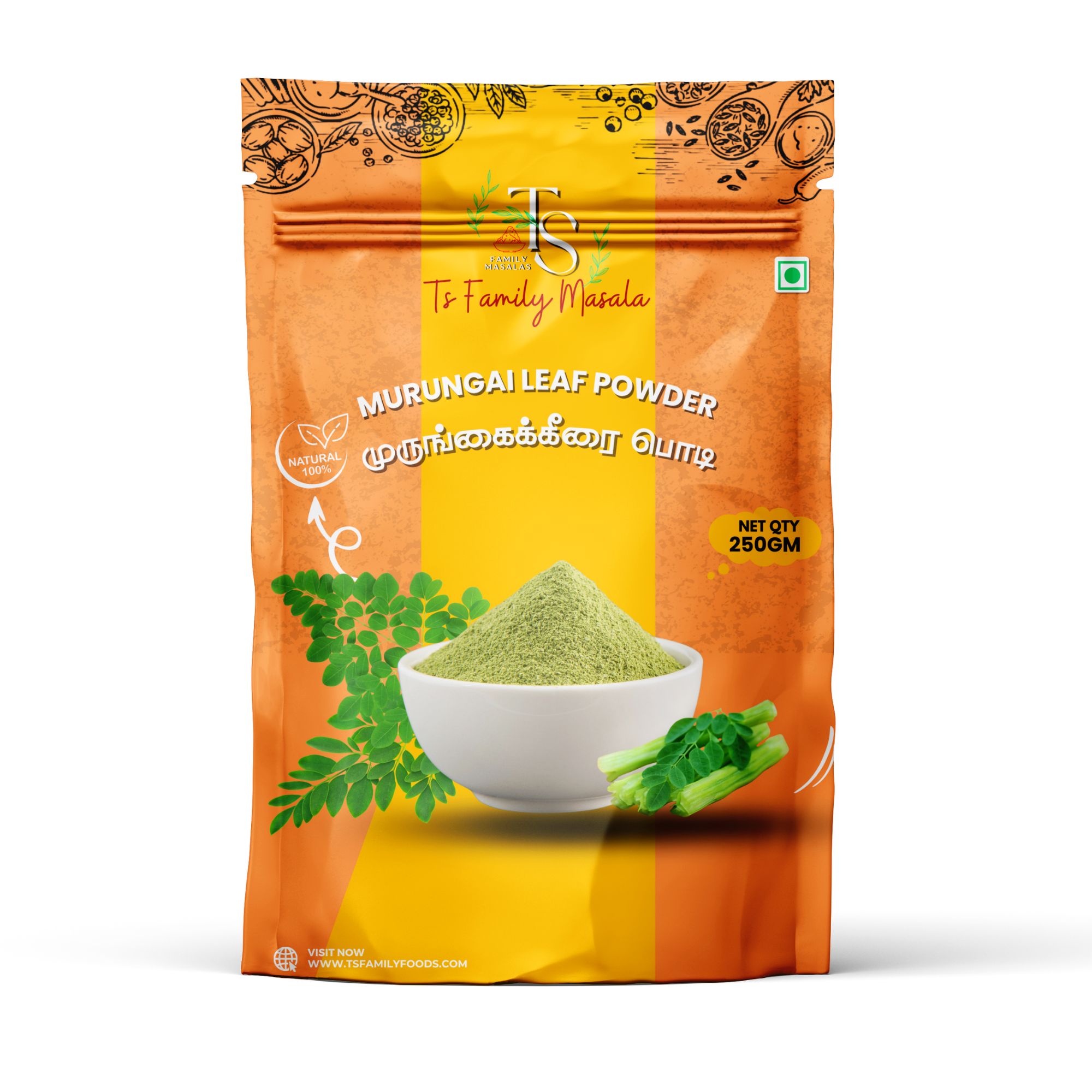 Enjoy the nutritious crunch and earthy flavor of TS Family Masala’s Murungai Leaf Powder, loved by health-conscious individuals, South Indian cuisine aficionados, and anyone who appreciates the wholesome goodness of homemade delicacies. Elevate your meals with our traditional podi, crafted with passion and tradition to bring homemade goodness to your dining table.